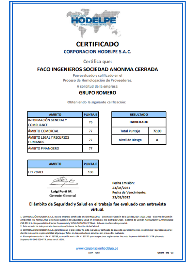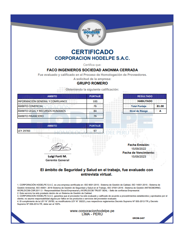 Mediante el presente se detalla algunos de los proyectos ejecutados por la empresa FACO INGENIEROS S.A.C.